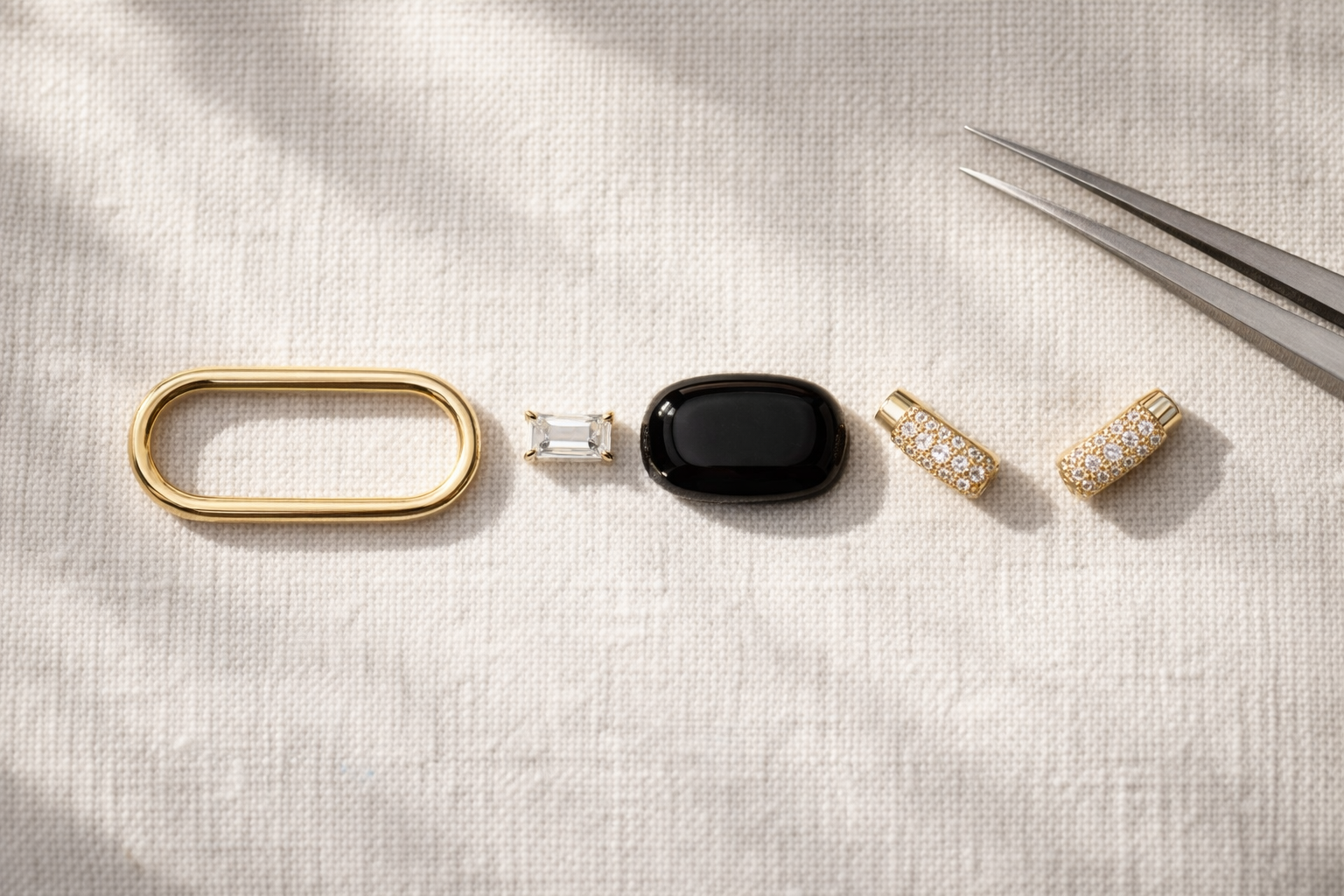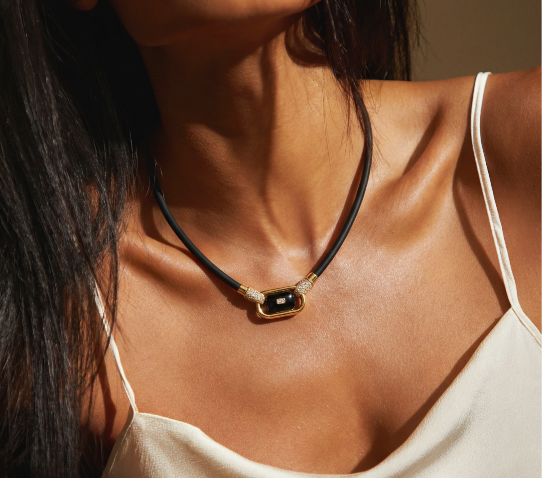 Designed in New York. Crafted in 18K yellow gold, black onyx, and natural diamonds — including an emerald-cut diamond at the center. A first-of-its-kind piece, born entirely from Shima's imagination.